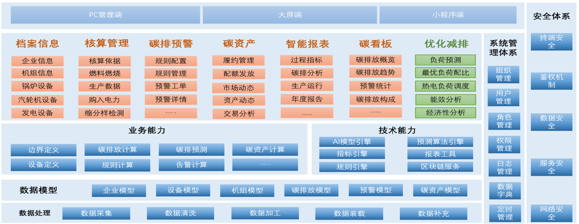面向碳排企业,提供多源数据采集、海量数据存储、计算、训练、分析的服务平台,